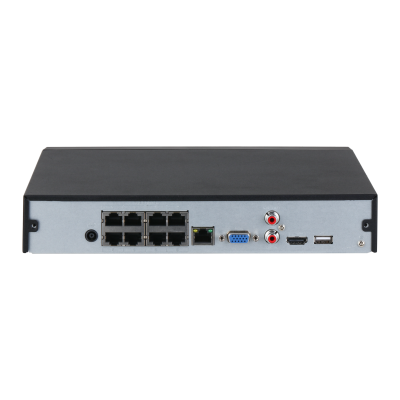 8-канальный IP-видеорегистратор с PoE, 4K, H.265+ и ИИ предназначен для построения высокопроизводительных интеллектуальных систем видеонаблюдения. Поддерживает входящий поток до 144 Мбит/с и запись видео с разрешением до 12 Мп. Оснащён 8 PoE/PoE+ портами (до 72 Вт) для прямого питания камер и отсеком под 1 HDD SATA III до 10 ТБ. Обеспечивает воспроизведение 4 каналов в Full HD или 1 канала до 12 Мп, имеет видеовыходы HDMI и VGA, гигабитный сетевой порт RJ45 и аудиовход/выход 1/1. Поддерживает ИИ-аналитику: распознавание лиц (до 10 баз и 5000 лиц), охрану периметра и SMD, а также расширенную аналитику с камер по нескольким каналам. Питание 53 В DC.