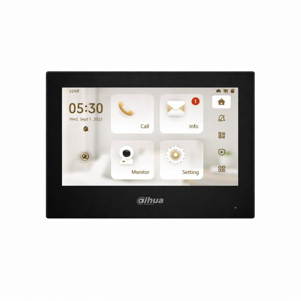 IP монитор видеодомофона с диагональю 7" в чёрном корпусе предназначен для управления системой видеодомофонии и видеонаблюдения с возможностью удалённого доступа.