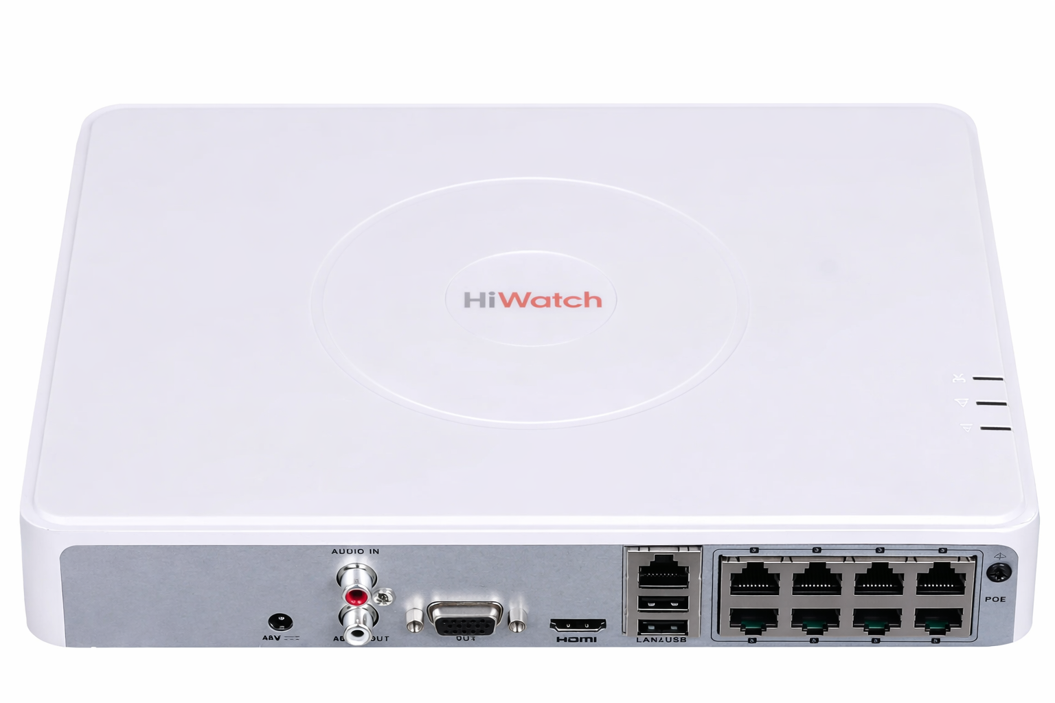 Регистратор оснащён 8 независимыми PoE-интерфейсами 10/100 Мбит/с с поддержкой режима передачи до 250 м (10 Мбит/с, кабель CAT5e). Поддерживается обработка событий MD2.0 IP-камер.